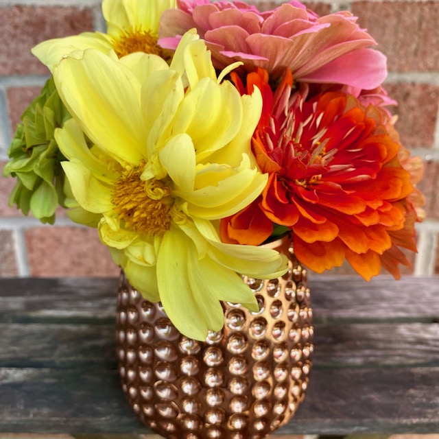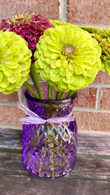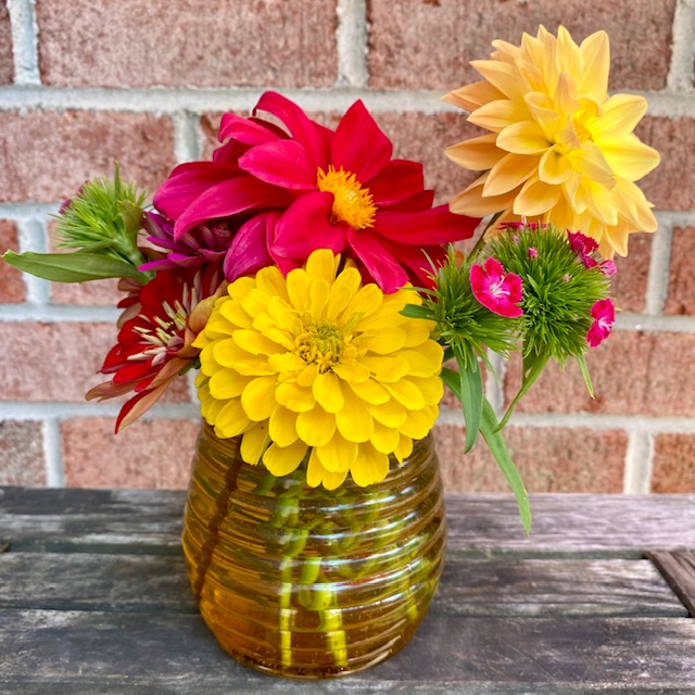 We plant lots of flowers for our bees: zinnias, black-eyed Susans, lavender, bee balm, etc. If you’re interested in buying a “Bee-loved Bouquet” from me, let me know! Bouquets would be one-of-a-kind and full of whatever is blooming that day — hand-picked and arranged by me. (Expect a casual cottage bouquet in a mason jar or thrift store glass vase. Don’t expect something that looks like it came from a professional florist! ๐ ) For various reasons, I won’t be selling flowers at the market this year, so the only way to get Windtree Bee flowers this summer is to reach out!! Prices will vary based on bouquet size, bloom freshness, and whether I’m delivering the bouquet or you’re picking it up.