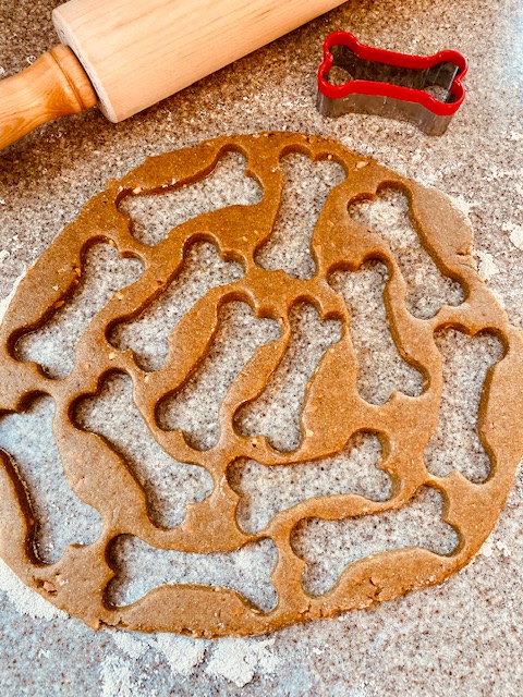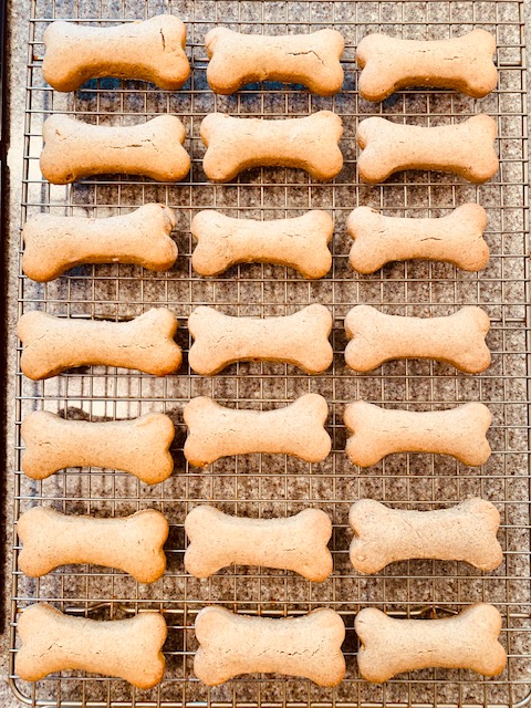 My dog biscuits are made with a handful of mostly organic ingredients, and two of them are things you can buy at the Hereford Farm Market: Windtree Bee honey and Oak Spring Farm eggs.