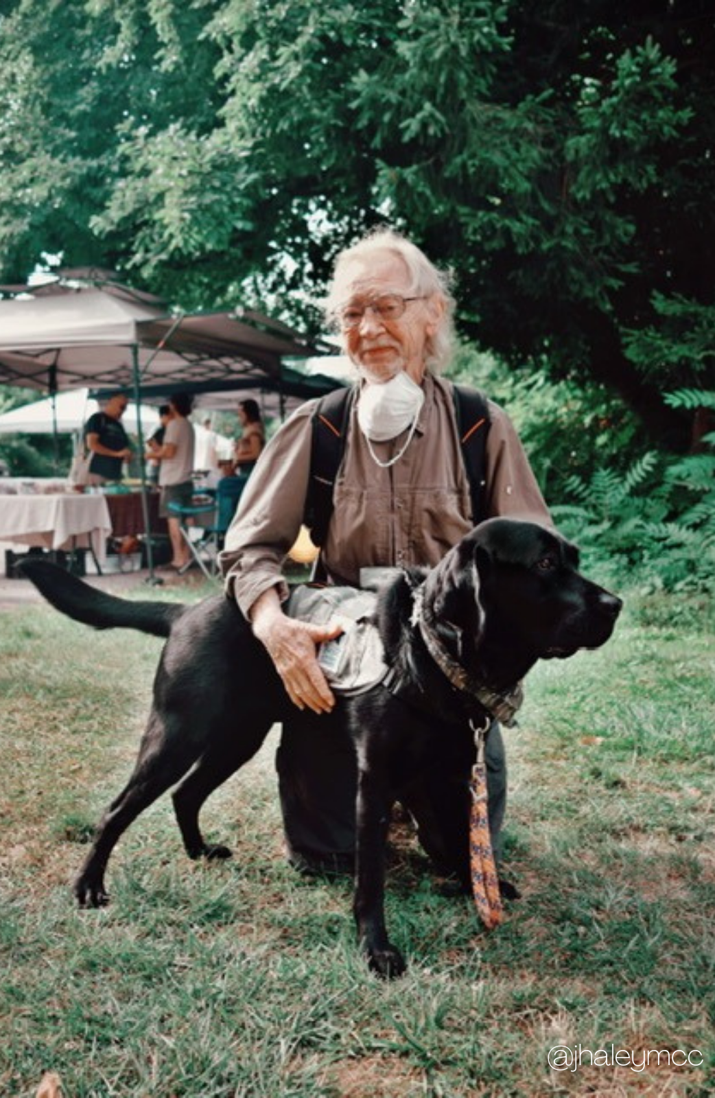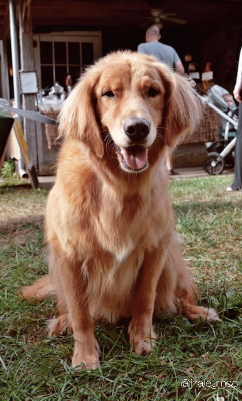 Riley is another Golden Retriever. He’s also a rescue dog — from Cairo, Egypt, which is pretty cool. (Riley has traveled farther than I have! 😀 ). He and his human buddy, Bob, are frequent market goers.