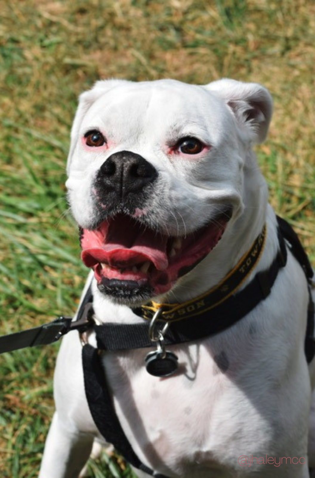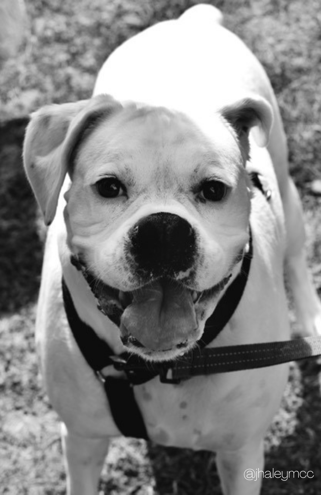 Oscar is a white boxer, which is a recognized AKC color, but less common than brindle or fawn. He was very happy and easygoing. Funny, since boxers were originally bred to hunt big game like boar, bears, and bison. In modern times, they’re used for tough tasks and are often war dogs, watchdogs, police dogs, and the like… but Oscar was chill. A real cutie!!