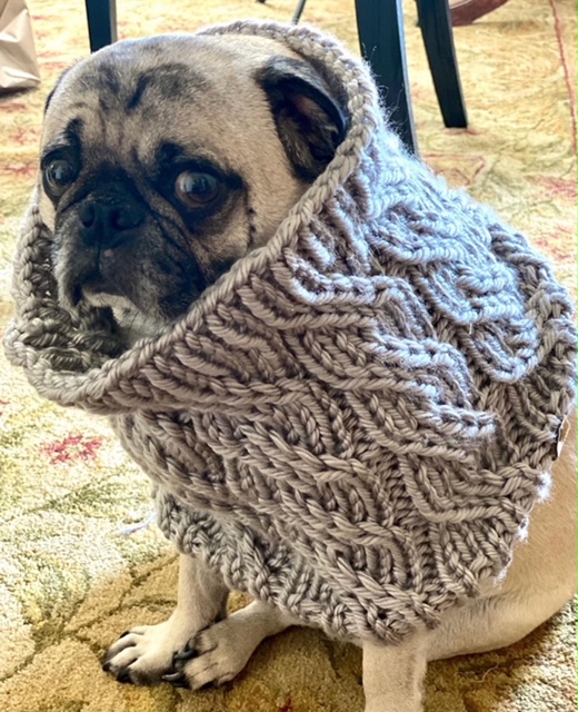 Mr. Wrinkles is Mandi’s adorable pug. He is wearing one of Rosie Posie‘s knitted cowls. Doesn’t he look dapper? (He certainly looks like a good sport!!) Pugs are great companions! The breed started in China and then became popular in Western Europe. Queen Victoria was a fan. Mr. Wrinkles couldn’t make it to HFM Dog Day, but I wanted to include his pic because he’s the best! 😀