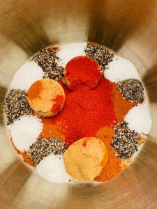 Classic BBQ Spice Rub: I’ve offered this before, back in June for Father’s Day. Use it to season rib racks, flank steaks, or anything else you want to grill.