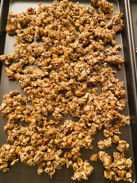 I also made two new batches of granola for tomorrow: Nutty Apple and Peanut Butter Banana. I’m selling these in 16 oz jam jars, which is about two cups. That’s a lot of granola, but if you love granola, you could eat it straight out of the jar. (BYOM — bring you’re own milk; I’ll have spoons!)
