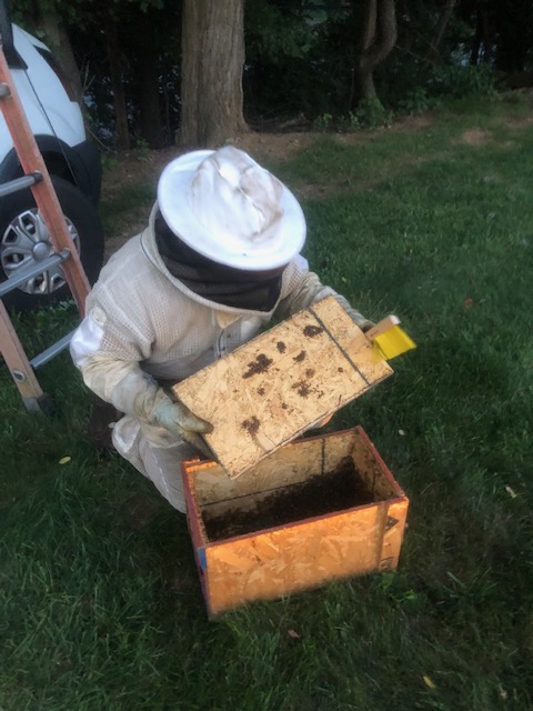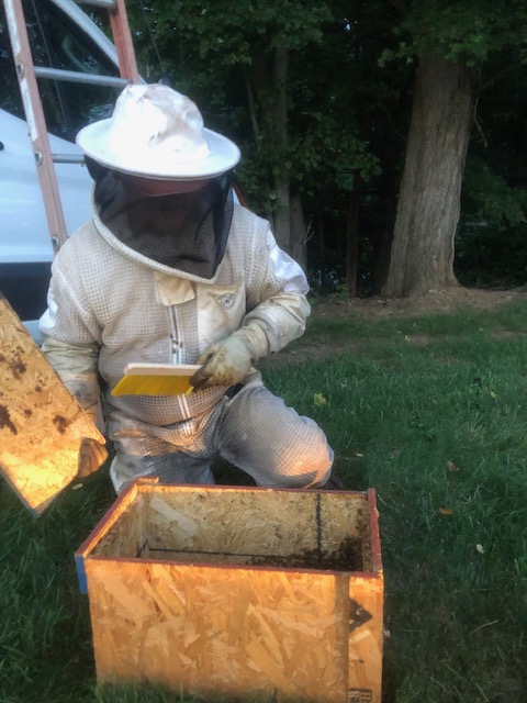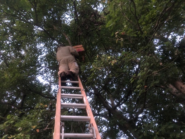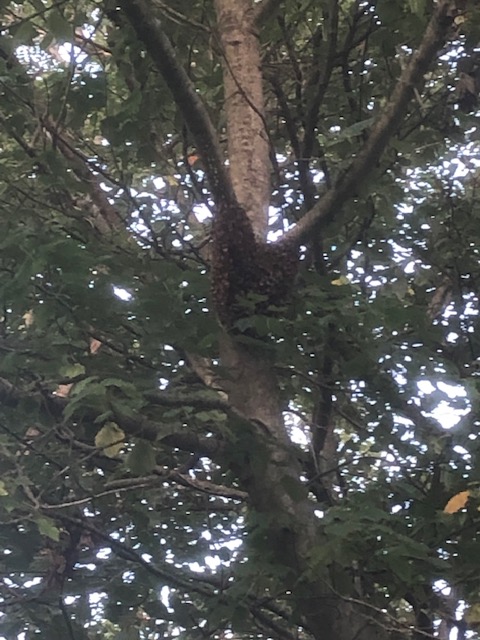 Craig built his first swarm catcher in the spring of 2020. (Click here for pics of it and a little bit about why beekeepers love catching honey bee swarms.) Since he built it, we’ve hung it in at least three different places and have captured absolutely nothing with it. Despite its uselessness, Craig was still able to capture two swarms this summer using other methods, which is fantastic!! The swarm hives are both still alive and thriving – one on our property, the other on a nearby farm.