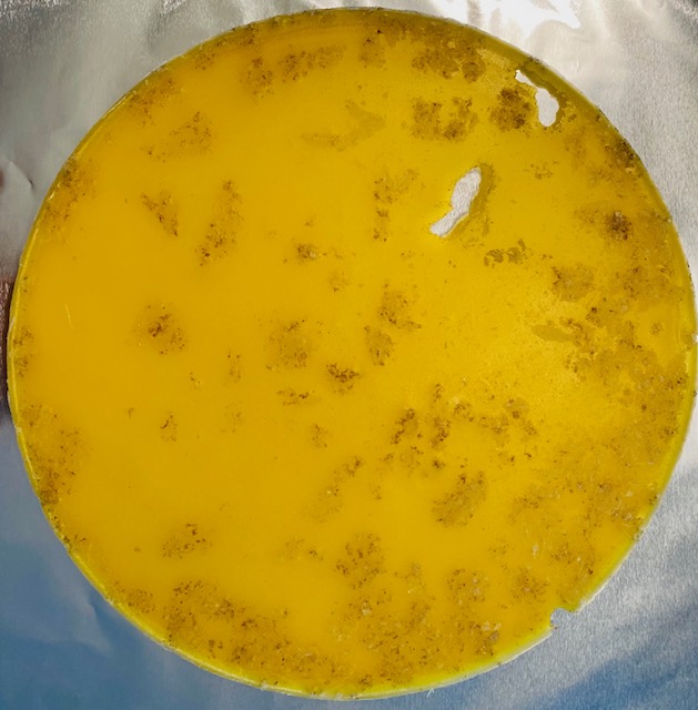 It was getting later and I was getting frustrated. I was tempted to throw everything — the crappy, waxy pots; the sticky, gooey half-rendered wax; and the idea of making candles — in the trash. But then I remembered how hard those little bees worked to make it and I couldn’t. So we rendered it again using a different method. Around midnight, we called it quits and left the wax out to cool. In the morning, we were rewarded with a near-perfect disc of wax. For one night’s effort we probably rendered enough wax to make one 4oz candle. Hahaha!