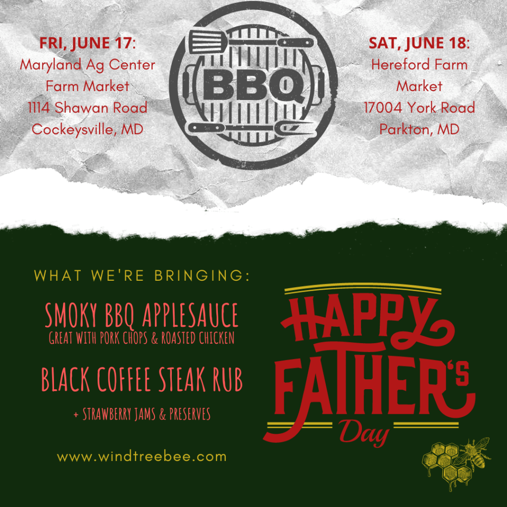 On Friday, June 17th, from 10:00 a.m. to 3:00 p.m., we’ll be down at the Ag Center’s farm market, which is located at 1114 Shawan Road in Cockeysville. It’s right across from the Oregon Grille. We’ll have our Windtree Bee table banner up, so please come find us!