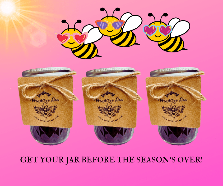 We’ll be in our usual place across from the Contented Rooster. Look for our Windtree Bee banner. Hope to see you there!