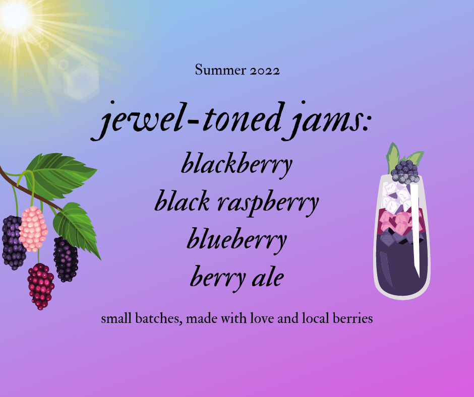 After a two week hiatus, we’ll be back at Hereford Farm Market tomorrow with a new batch of jam — Blackberry! I bought a flat from Krista at Foggy Bottom Farm in White Hall earlier this week. The berries were perfection!! A half-dozen kids taste-tested them over the past two days and I canned the rest using a delicious recipe from Marissa McClellan, the Food in Jars lady. Her recipe has hints of cinnamon and nutmeg, so the whole batch smelled amazing, kind of like late summer meets early fall.