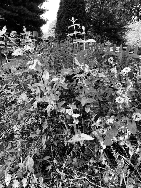 Late Fall Garden: Flowers were left for the pollinators but will be cleared soon.