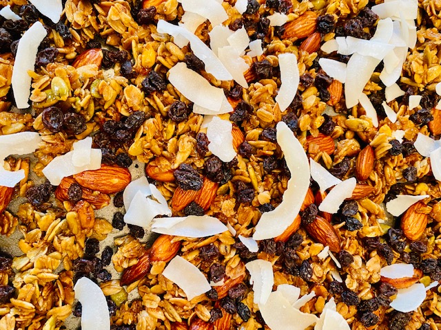 CHEWY ALMOND GRANOLA WITH CURRANTS & COCONUT