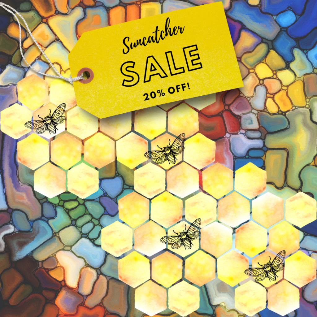 Our stained glass, one-of-a-kind, artisan suncatchers are 20% off!