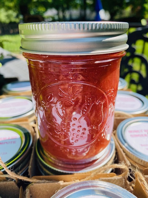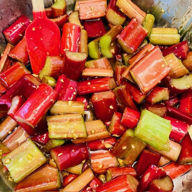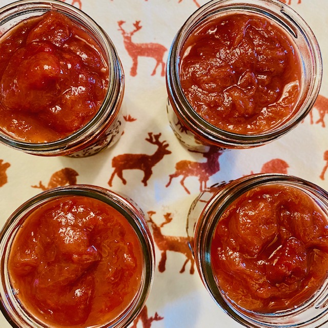 Honey rhubarb ginger compote – delicious mixed in yogurt parfaits or on ice cream.