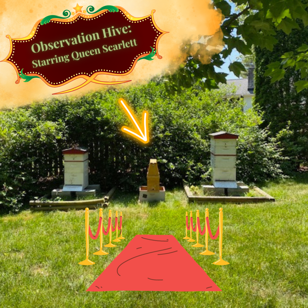 We’re excited to have an extra queen and hive just for observation purposes! Since this queen is going to be a celebrity, I’m naming her Scarlett after Scarlett Johansen, who dabbled in beekeeping. (This was a quick pick name – want something different? Stop by our table and you can suggest a different one!)