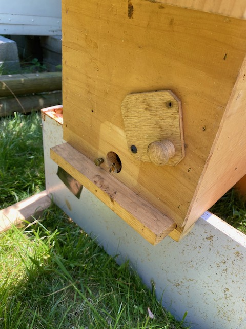 It’s a specially made hive box that allows a queen and her attendant bees to be transported safely to an event, so that people can see what the bees look like up close. Everyone (especially kids) have a great time looking for the queen. The observation hive is sealed, so air can get in but bees can’t get out. There are two clear panels on either side of the top that give observers a chance to see what’s going on in the hive.