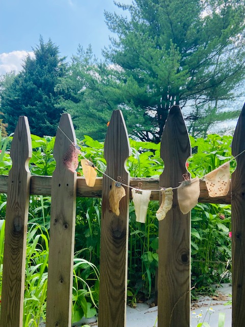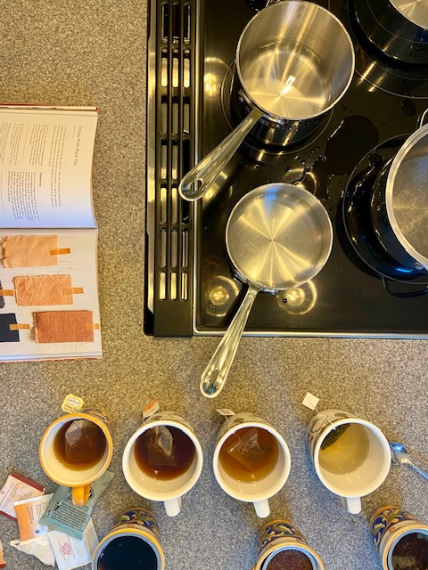 My younger daughter, Ellie, is a Fashion Design student at the Fashion Institute of Technology. She wanted to experiment with natural fabric dyes, so earlier this week we spent one morning testing tea blends, including chai, to see which worked best.