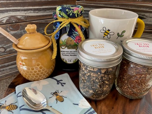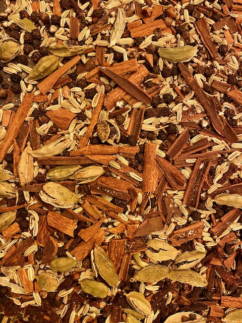Put 1 ½ tablespoons of tea blend into a tea ball or tea strainer. Pour one cup of boiling water over it and steep for 4 minutes. Add honey to sweeten, top with steamed milk, and sprinkle with ground cinnamon or ground cardamom. Enjoy!