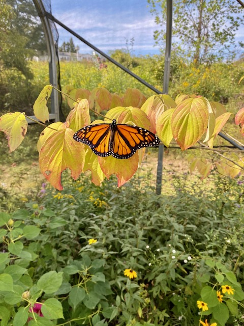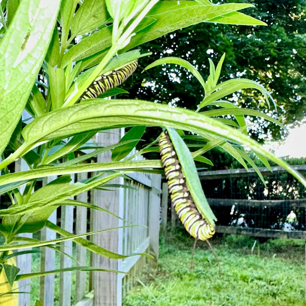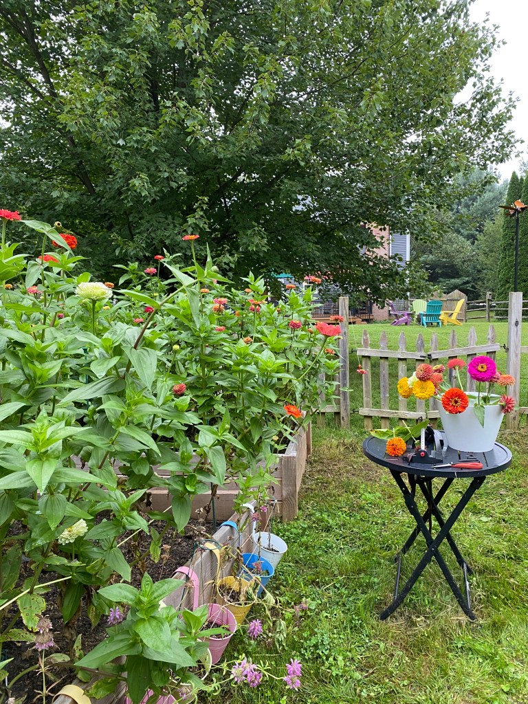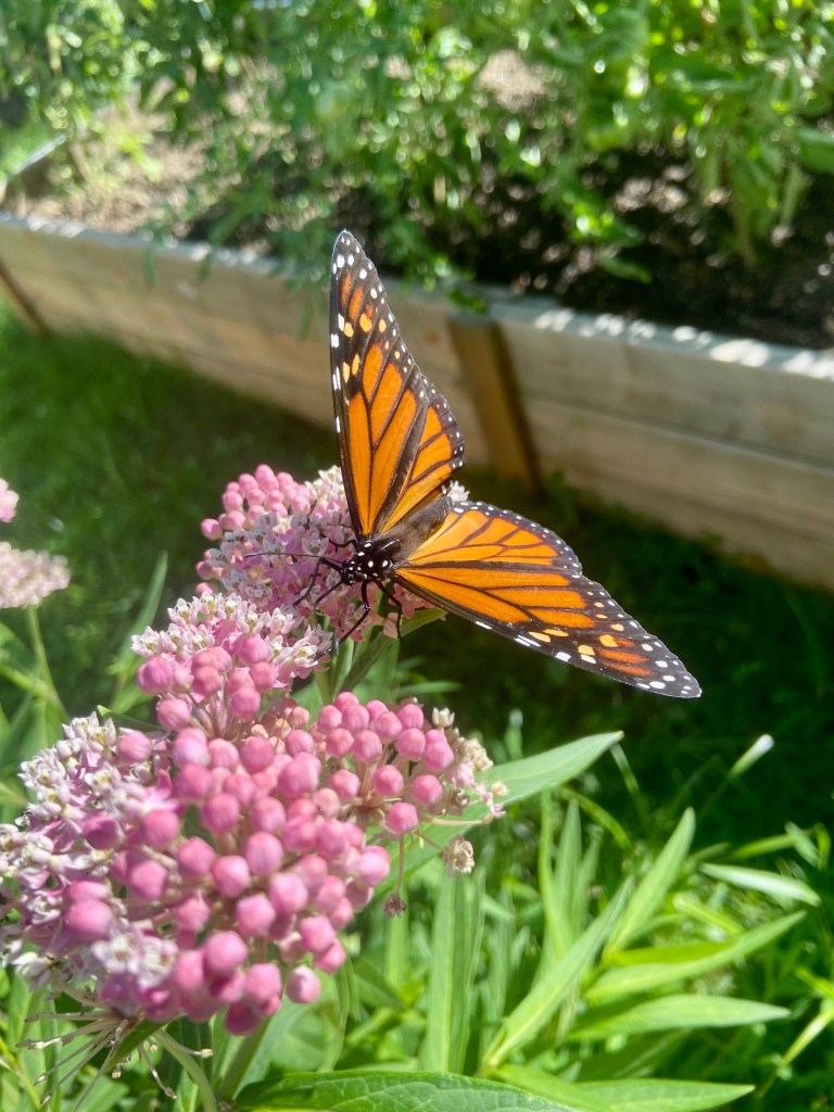 After a worrisome late start, the dahlias turned out beautifully! We also grew some cactus flower zinnias. Love their “Raggedy Anne” look. Our milkweed came up again and we saw at least two caterpillars and a chrysallis. Unfortunately, we didn’t get to see the chrysallis transform into a monarch. Maybe next year!