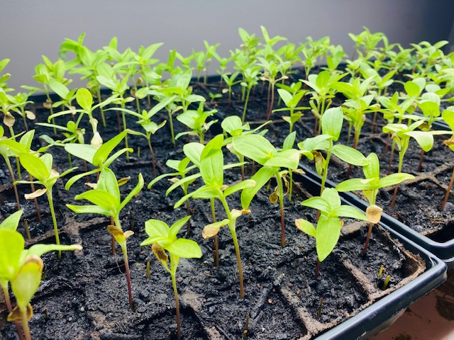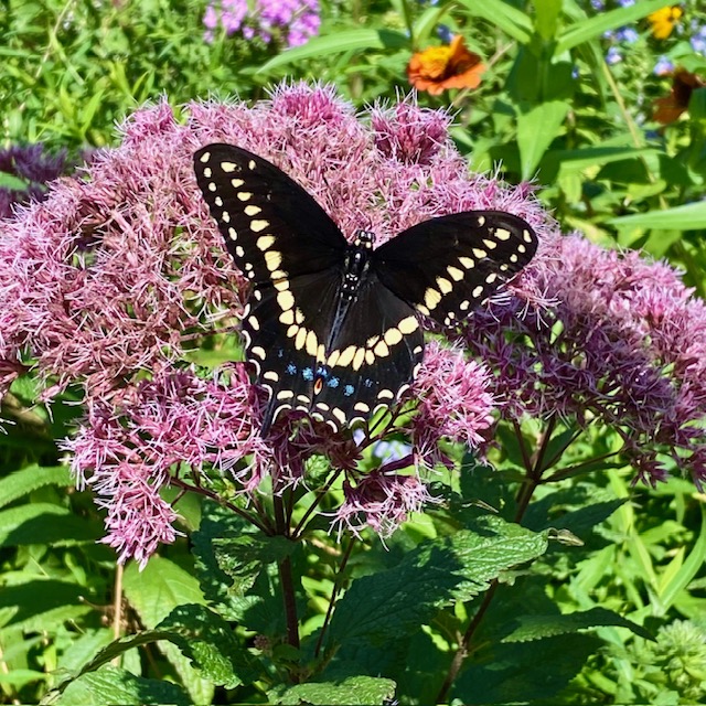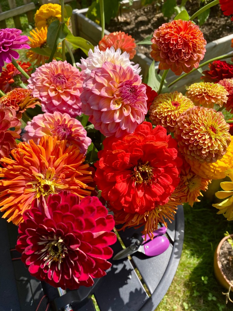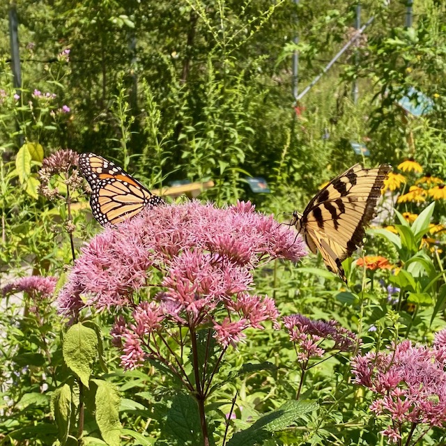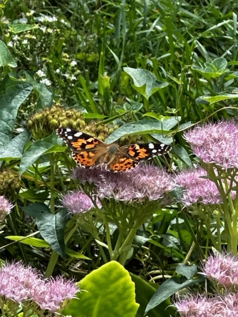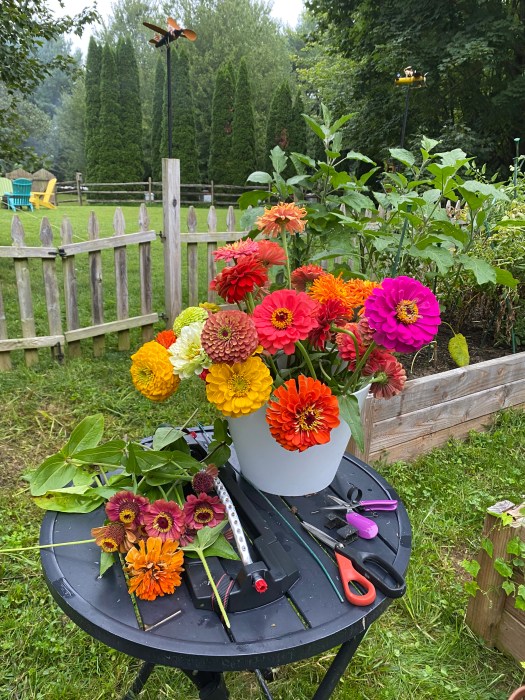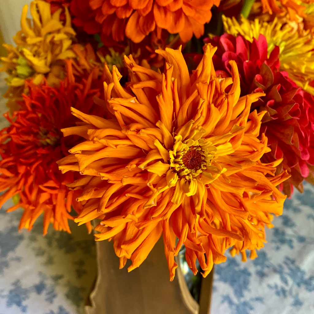 After a worrisome late start, the dahlias turned out beautifully! We also grew some cactus flower zinnias. Love their “Raggedy Anne” look. Our milkweed came up again and we saw at least two caterpillars and a chrysallis. Unfortunately, we didn’t get to see the chrysallis transform into a monarch. Maybe next year!