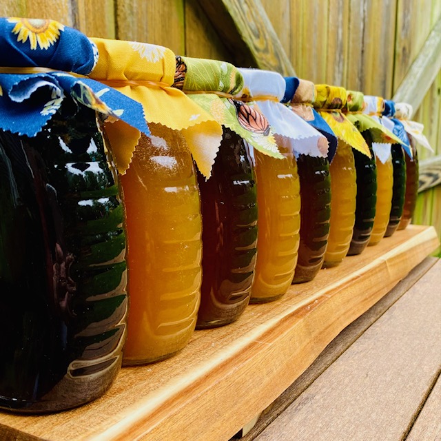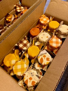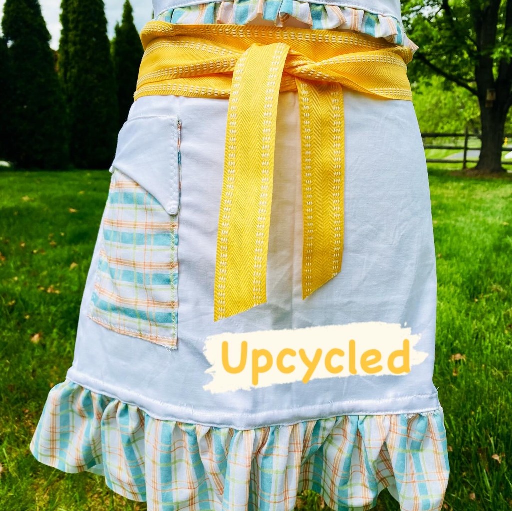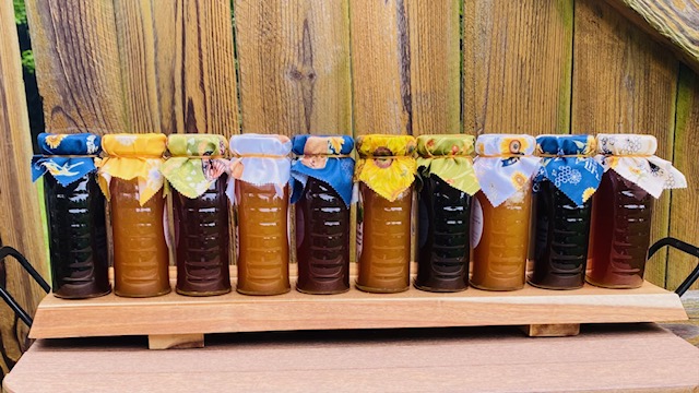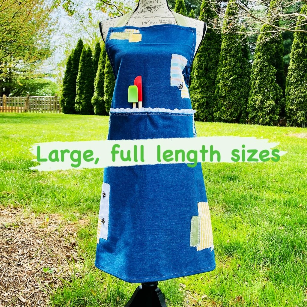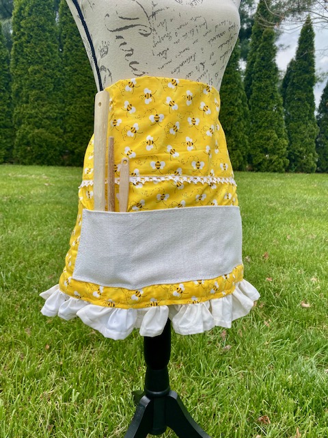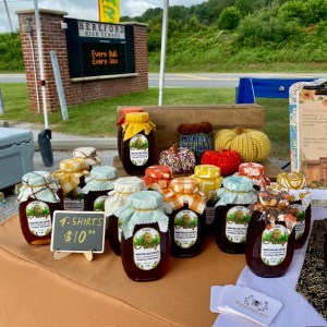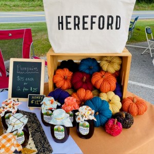 Our regular market, Hereford Farm Market, is about halfway through its season. Weโre there once a month this year, which is working for us. I miss being there every week, but we had a lot of scheduling conflicts this summer, so Iโve been grateful for the Saturdays we’ve been able to sell there. Weโll be at HFM again tomorrow, September 6th from 9:00 a.m. to noon. Most of our crystallized honey is gone but weโll have honey from this yearโs harvest, as well as cut flowers (zinnias and dahlias) and the last of this yearโs handstitched OOAK upcycled aprons, which can be used for cooking or gardening.